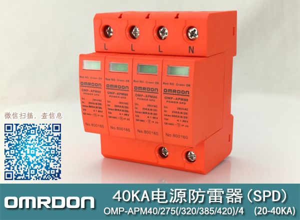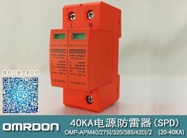 40KA二級(jí)電涌保護(hù)器SPD(又稱電源防雷器、電源避雷器、浪涌保護(hù)器、過壓保護(hù)器) OMP-APM40-