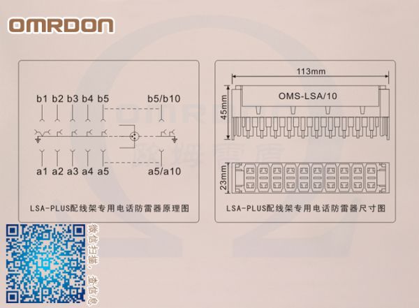 歐姆雷盾(OMRDON)OMS-LSA/10配線架專(zhuān)用電話防雷器主要用于通信系統(tǒng)程控電話交換機(jī)內(nèi)外線、集團(tuán)電話等設(shè)備提供線/線間及線/地間的浪涌過(guò)電壓保護(hù),直接插入KRONE( 科龍)LSA-PLUS配線架上,每組10線保護(hù);特別適用于模擬電話交換和ISDN網(wǎng)絡(luò)系統(tǒng)。應(yīng)用于用于雷擊區(qū)域LPZ0- LPZ1分區(qū)界面。