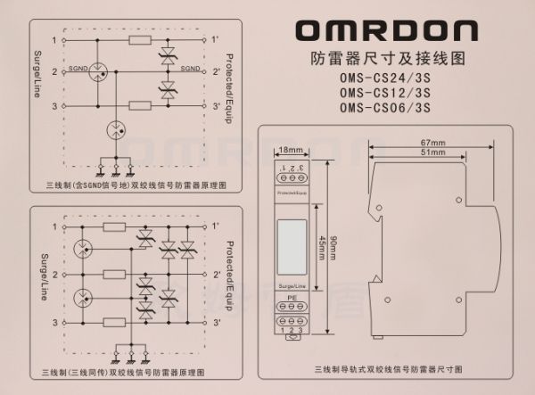 三線制雙絞線信號(hào)防雷器,控制信號(hào)防雷器,RS485防雷器,OMS-CS06/3S,OMS-CS12/3S,OMS-CS24/3S-