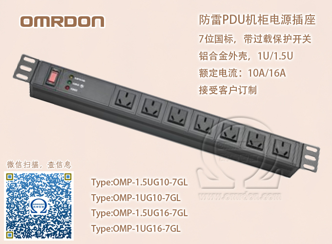 防雷PDU機(jī)柜電源插座 1.5U國標(biāo)7位 過載保護(hù) OMP-1.5UG10-7GL-