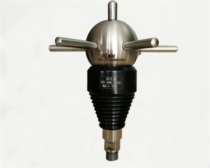 在分析雷電放電機理時,F(xiàn)rance Paratonnerres的技術(shù)團隊注意到,在對地放電的瞬間,先導(dǎo)通道將高電勢從高空的帶電云層帶到近地面,使近地面的空間局部電場可達幾萬伏/米,足以保證IONIFLASH MACH避雷針收集足夠的能量將空氣擊穿,釋放自由離子,在先導(dǎo)頭部和大地之間構(gòu)建起導(dǎo)電通道,率先完成接閃,從而保護周圍構(gòu)筑物。