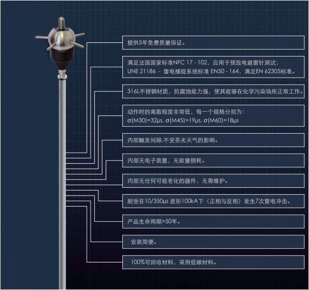 法蘭西提前放電避雷針,預(yù)防電避雷針廠家-
